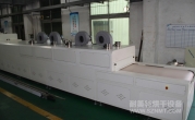 2、外形尺寸(約):總長24000mm*總高1690mm*總寬1220mm,地面到網(wǎng)帶的高度為850mm,爐體內(nèi)進(jìn)料高度為150mm;烘干部分總長14000mm,分7段獨(dú)立控溫(每段4個(gè)測(cè)溫?zé)犭娕迹慷?000mm。冷卻段長4000mm,UV預(yù)留區(qū)長2000mm,前后緩沖區(qū)各長500mm,進(jìn)出料部分長1500mm, 爐體前后裝有急停開關(guān)。